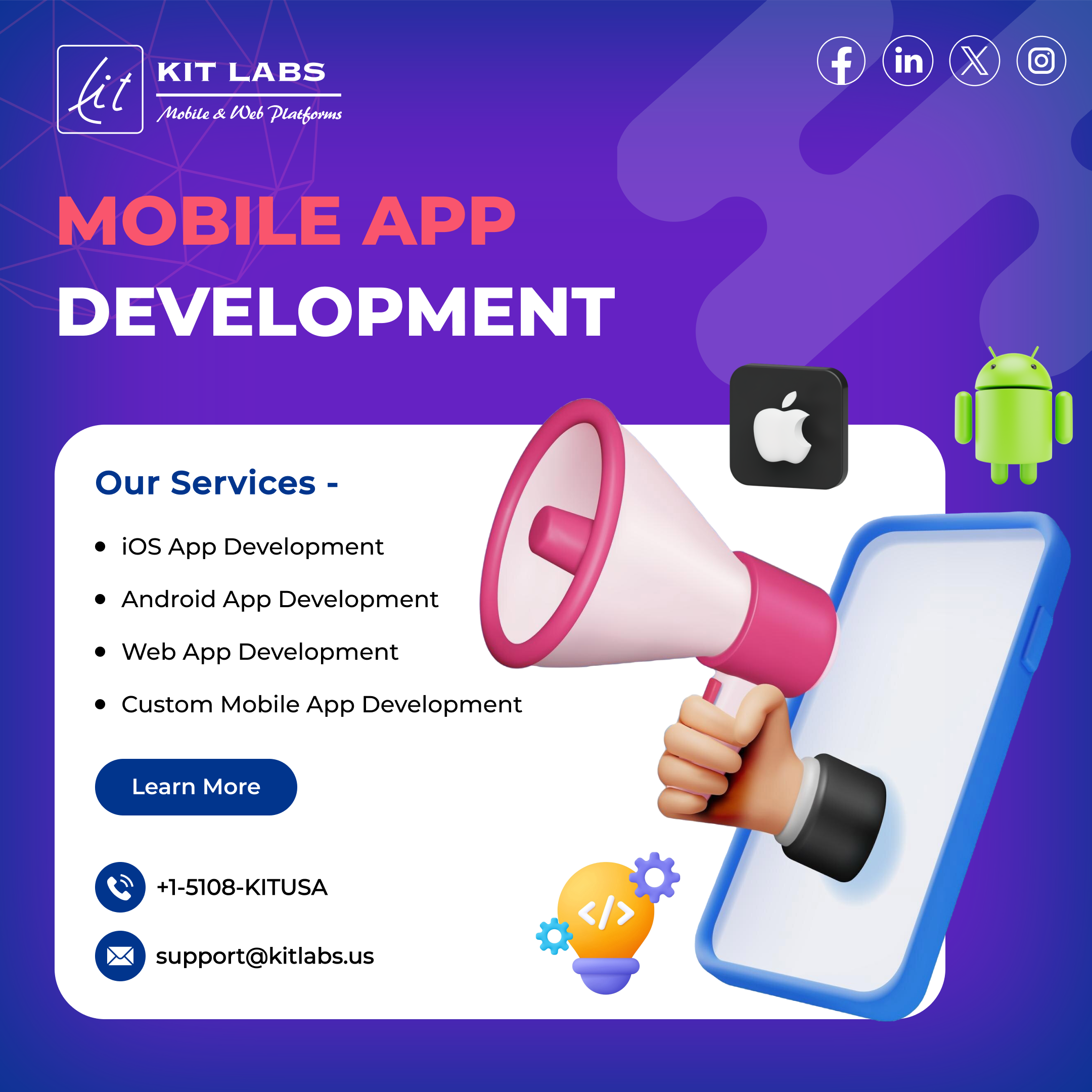KITLabs Inc is a trusted partner in AI-powered mobile apps, custom web development, and advanced software solutions. We specialize in transforming bold ideas into high-performance digital products that drive growth and innovation. From intuitive mobile experiences to intelligent AI-driven solutions, our team crafts scalable, user-centric platforms that enhance engagement and efficiency. With a focus on quality and cutting-edge technology, KITLabs Inc empowers businesses to stay ahead in the digital landscape.